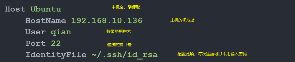 如果需要配置免密登录,需要将本机的~/.ssh/id_rsa.pub的内容放到远程主机下的~/.ssh/authorized_keys文件中。这样以后输入密码就不用登录了。