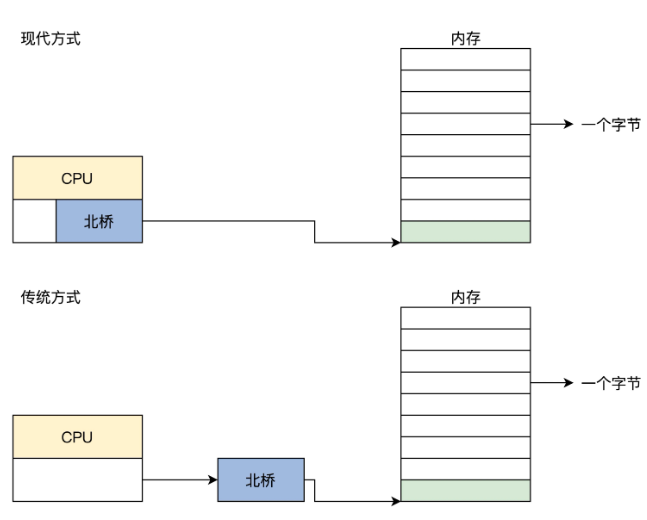 控制内存刷新和读写的是内存控制器,集成在北桥芯片上。传统方式下,北桥芯片存在于主板上,随着芯片集成度的提高,现代CPU将北桥芯片集成在CPU中。