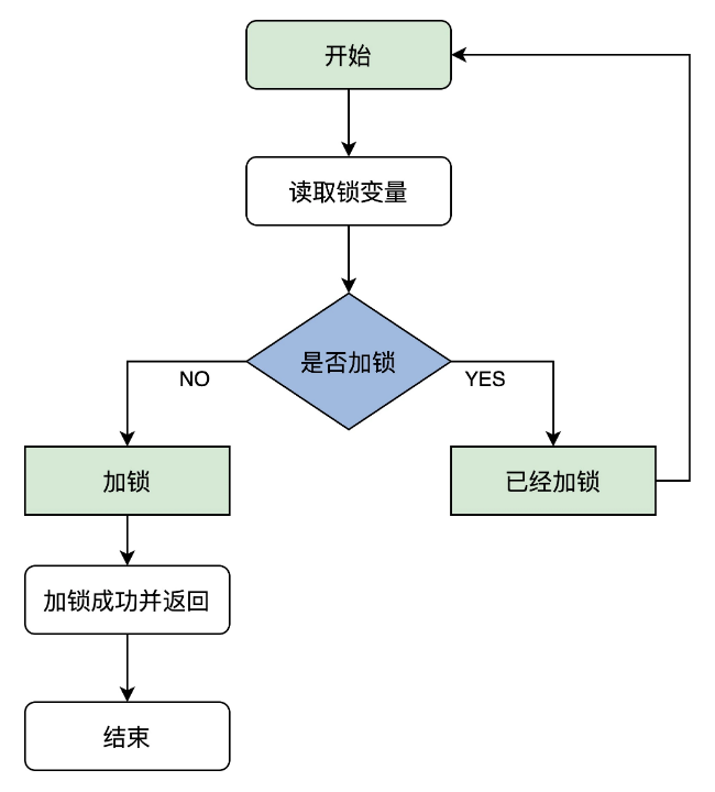 - 读取锁变量。判断是否加锁,如果没有加锁则加锁,然后返回表示加锁成功,否则执行下一步。