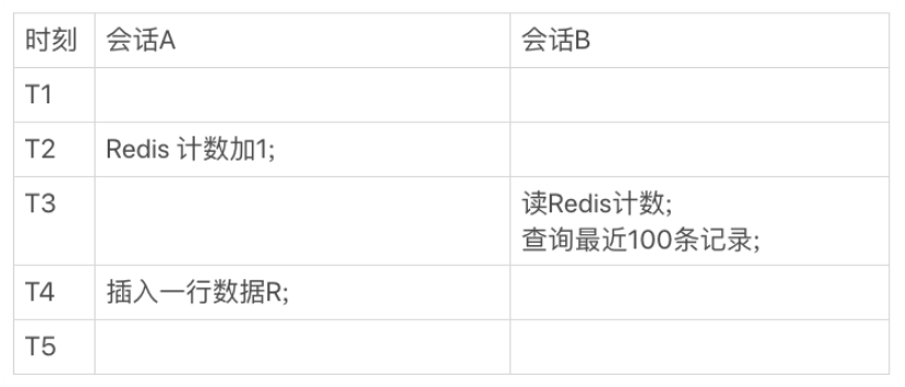 逻辑会话B看到的结果里,查询计数值和“最近100条记录”看到的结果在逻辑上是一致的。