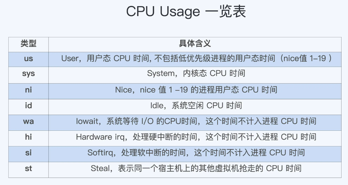 下图是cpu使用的分类