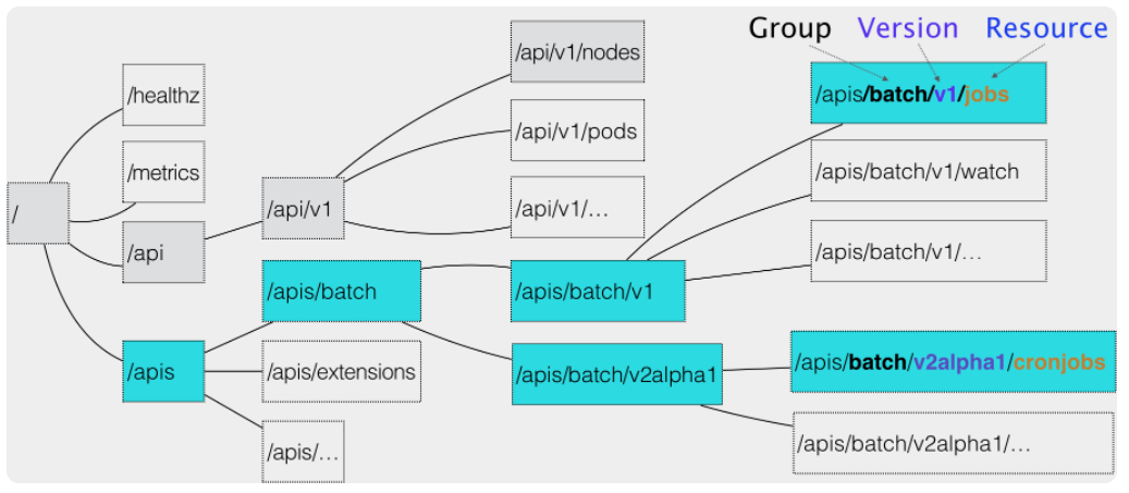 非核心对象必须在/apis层级往下找对应的组。例如组为batch,那么就要找到/apis/batch。