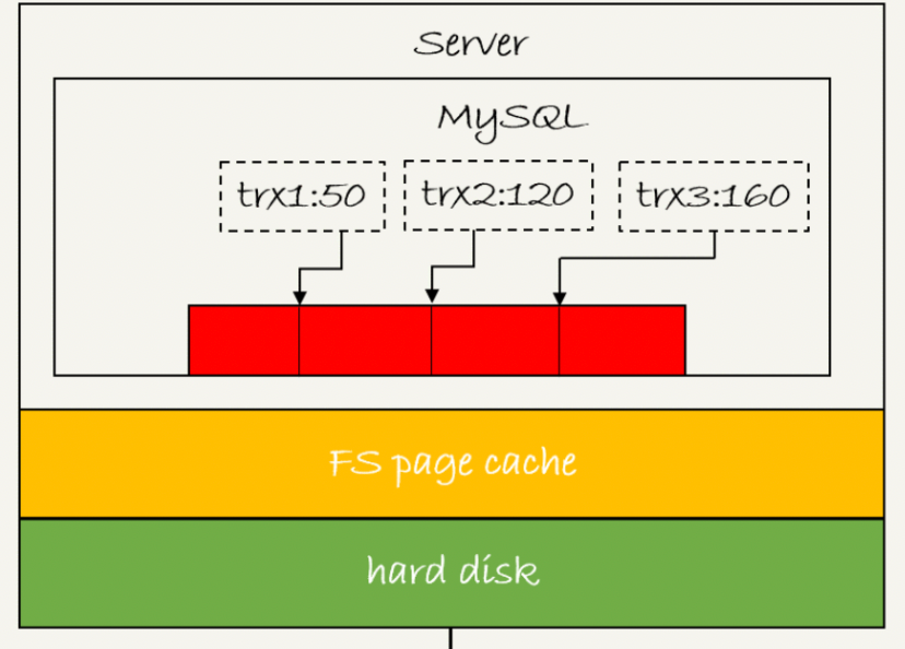 - 等 trx1 要开始写盘的时候,这个组里面已经有了三个事务,这时候 LSN 也变成了 160;